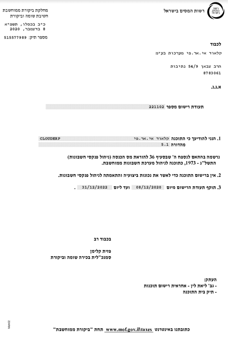 ממשק אוטומטי מול מערכת לחיתום בחתימה מאושרת מאפשרת לבער את החשבוניות לאחר הגשת הדוח השנתי. נוסח החוק