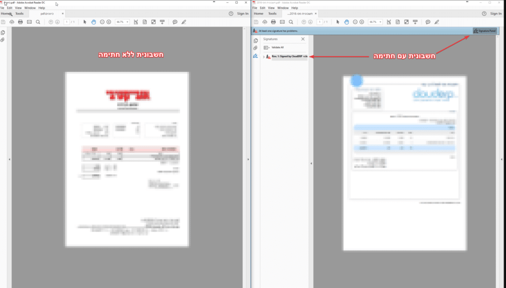 בתמונה הבאה, מצד ימין ישנו קובץ חתום ומצד שמאל קובץ שאינו חתום