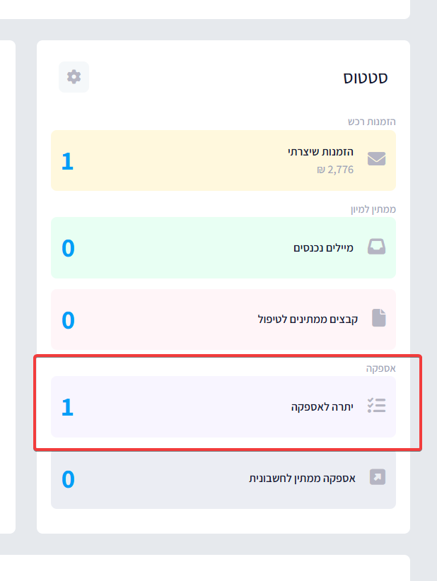 זהו! עכשיו אם נחזור לסטטוס בדף הבית נראה שמספר הפריטים שממתינים לאספקה ירד