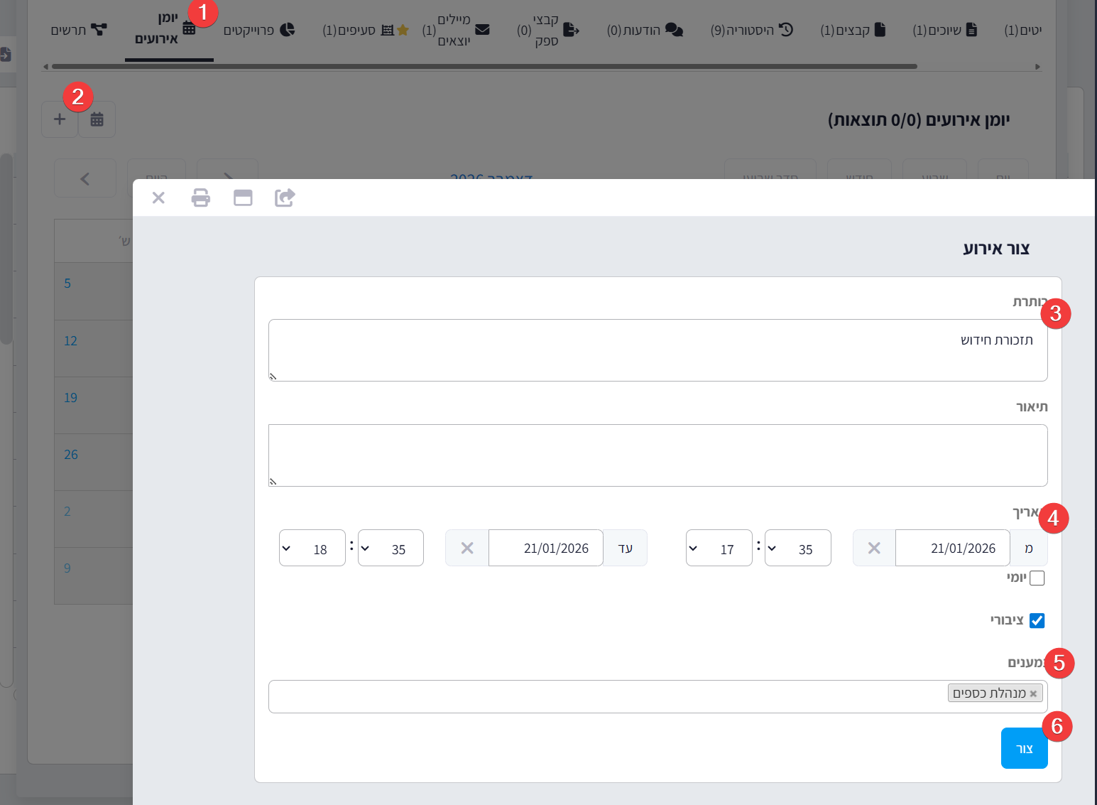 ראשי » Wiki » יצירת אירוע על גבי יישות